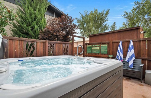 Cheerful ground level condo close walk to Main Street. Comfortable and cozy bedding and furniture with an unbeatable location. Purple Sage 5 features an outdoor space complete with fire pit, hot tub and grill with outdoor seating.