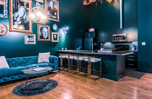 This downtown loft is located directly behind brewery district and walking distance to rogers place. vaulted 20 foot ceilings and Victorian gothic decor make this a unique and cozy destination. This is not a business for us, it is our home! A fully stocked kitchen with all the gadget needed to create a gourmet meal, including cookbooks! Coffee, tea, and a full work station including an iMac and a printer. Extremely pet friendly area with lots of great places to walk. Tons of free parking.