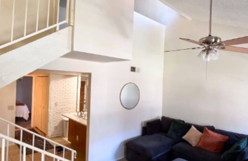 This Gilbert townhome boasts 2 inviting bedrooms with 2 queen beds. The bathrooms feature a jetted bathtub, bidet, shower, and bathtub. In addition, there is a cozy living room with a sofa bed for extra comfort. Guests can enjoy the soothing ambiance and brilliant amenities like WiFi, AC, and a fitness room. We look forward to welcoming you to our fantastic retreat.