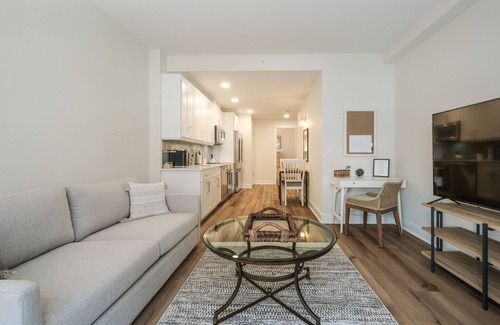 Welcome to the Townhouse on Purdy - a new residential building in Downtown Harrison. This fully stocked one bedroom suite is located in a boutique style complex with 13 units. The suite features Pottery Barn and West Elm furnishings, Thermodor Appliances, and private laundry. The building features include fitness room, elevator, and two rooftop terraces for guest use. Walk across the street to Metro North with quick service to Grand Central or Stamford CT and beyond. No car needed as this location is an easy stroll to many local cafes, restaurants, shops, and markets. This is a great home base to explore the Sound Shore Communities of Westchester County, the Hudson Valley Area and New York City. Whether you are visiting family and friends in the area , here for a business meeting, or escaping the city to try the suburbs, you will feel at home in the Townhouse!