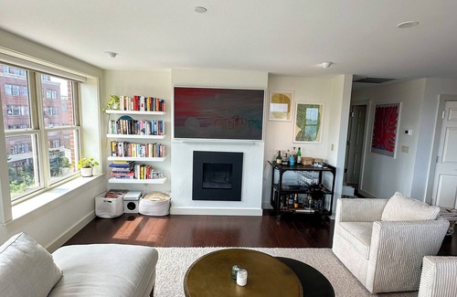 Downtown top-floor corner condo with water view. Furnished 2BR/2BA at the edge of Portland's Old Port. Enjoy water views, abundant natural light, and a spacious living area with gas indoor fireplace. Features include a modern kitchen with island, high-end furniture, new appliances, hardwood floors, marble baths, and in-unit laundry. Deeded on-site parking and a walkable location near top restaurants make this the perfect downtown retreat. $5000/month, please reach out with any questions.