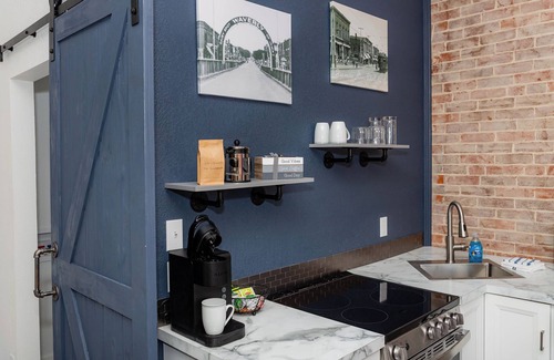 Welcome to Studio C, a cozy 320 sqft. downtown studio apartment that has been completely remodeled to compliment the charm of our downtown area with exposed brick and all new appliances! While Studio C is small, it has the essentials and luxuries needed to make your stay comfortable! Weekly and monthly discounts are available!