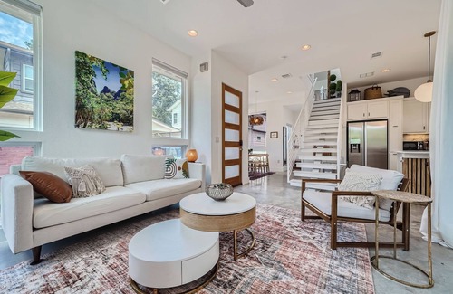 Located in Austin, this house is a dream. With 2 bedrooms including a king bed and a sofa bed, along with 2 bathrooms equipped with a shower and bathtub, guests will feel right at home. The property boasts AC, heating, a hair dryer, and an iron for convenience. Nestled in a peaceful neighborhood, this fabulous retreat is the perfect spot for a phenomenal getaway. It's easy to see why you'll be able to unwind at our place.