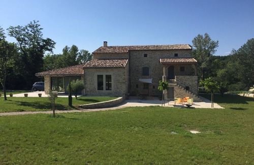 Nice comfortable house, nicely decorated, to accomodate numerous careful families. Very large plot in the middle of nature, magnificent view of the mountains, numerous terraces, river, woodland, totally fenced pool, bowling alley, large portico, ping-pong table ...