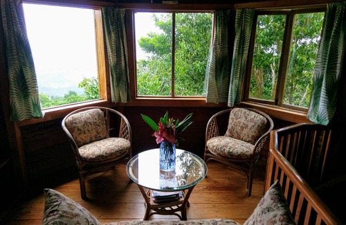 That warm welcoming feeling. Furnished with handmade wicka chairs,double pillow top queen size bed for a comfortable and relaxing rest. Open your room door to our beautiful ocean view balcony and take in the most breathtaking view of the caribbean sea. Our classic spiral stair case takes you down stairs to our small,unique kitchen which is equipt if guest wishes to cater for themselves while staying here.