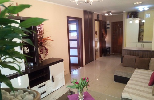 You will not miss anything here. The apartment is ideal for business meetings, business trips and a getaway with friends or family. The apartment is ideal for four people. There is a large bed 200 x 160 in the bedroom and a large sofa bed 200 x 180 cm in the living room.