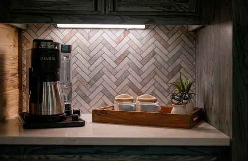 Kitchen and Dining: The heart of this cabin is its gourmet kitchen, designed to handle large groups. With a double refrigerator/freezer, double oven, and ample counter space, cooking for a crowd is a breeze. The island seats 6, and the dining table comfortably fits 10, making family meals and gatherings extra special. You'll find every tool you need, from cookware and bakeware to small appliances like a Keurig, blender, and crock pot.
