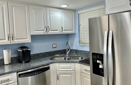 Newly renovated, consider this condo your home away from home while you visit Ormond Beach. Located directly on the ocean, wake to the sound of the ocean waves and an awe-inspiring sunrise. This lovely rental features 2 bedrooms with a king and queen bed, 2 bathrooms with tub and shower amenities, and convenient Wi-Fi access. Guests can enjoy a peaceful stay with access to a fitness room, private laundry room, pool, library, beachfront access, and more. Experience the magic of Ormond Beach at our condo. Condo is stocked with all the necessities to make your stay a dream come true. Well appointed kitchen includes pot, pans, utensils, cookware, dishware including wine glasses, a blender, toaster and much more. The condo also comes with a Keurig coffee maker and enough K-cups, cream and sugar to allow you flexibility with when you venture out to a grocery store. Kitchen is thoughtfully arranged with everything you need to create an artful meal if that is your passion. If going out is your preference, there are many wonderful restaurants in Ormond Beach and the surrounding area to choose from. Enjoy your morning coffee on either the east or west balcony, both appointed with seating and table arrangements for your relaxation. The living room and both bedrooms come with smart TVs for your viewing pleasure (cable included, but feel free to log into your favorite TV apps). There are also plenty of adult and children's games located in the TV cabinet if you'd rather spend some quality time together. The master bedroom has an ensuite bathroom, with the second bathroom being located directly outside the second bedroom. There are plenty of fresh towels (bath and beach) in the linen closet for your use. Both bathrooms are stocked with enough soap, shampoo and body wash to make that late night arrival an easy one. Directly across from the condo entrance is a private laundry room, equipped with a washer and dryer. The laundry room also contains beach chairs, kid's toys and other beach paraphernalia to enable you to spend the day enjoying the sun and surf! Or if you prefer, you can relax by the pool overlooking the ocean. Either way, you're going to have a fantastic vacation, and we look forward to hosting you!!