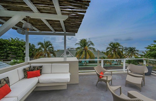 Driftwood is a stunning modern vacation villa with a private plunge pool in its bright and airy courtyard. There are 3 spacious luxurious bedrooms each with a bathroom en suite. Driftwood is a villa rental that may also be booked as a 2 bedroom unit at a reduced price. Wide glass doors slide open around the living and dining areas, filling the interiors with light. Driftwood Vacation Villa is located in the gated community of Silver Sands - a private development boasting a beautiful white sand beach for the use of its residents and guests. Upon request, a golf cart may be available at special low rates for Driftwood Guests only.