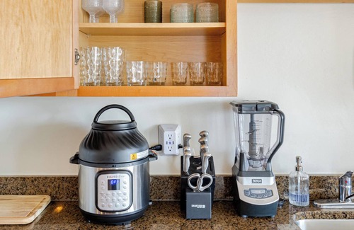 - Fully equipped with stainless steel appliances, granite counters, cookware, and utensils.