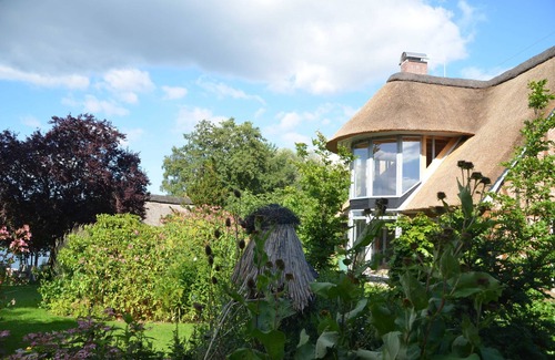 The thatched "Espenhaus" of Schierensee stud farm is located in a dreamlike location right by the private waters. The lovingly created with historic building materials 2016 gem is equipped with high quality comfort: oak floors, fine clay plaster, spacious living room with glazed bay window, dining area, separate bedroom, TV, radio / CD player, wireless internet.