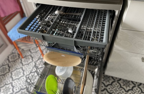 The kitchen is equipped with an oven, a stovetop, and a refrigerator, as well as a coffee maker, an electric kettle, and a microwave. Bathroom amenities include a hair dryer, towels, and toilet paper. And thanks to the washer and dryer, you'll even be able to travel light. Other amenities include bed sheets, a desk, an ironing board, and heating.