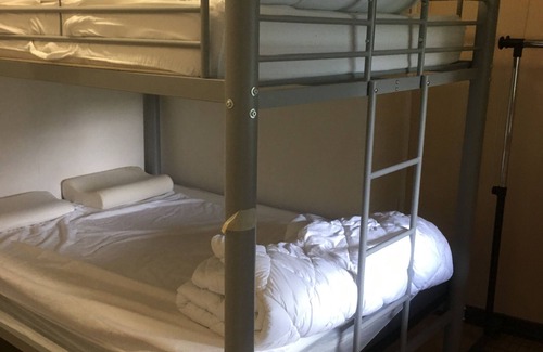 The kitchenette is equipped with an oven and a refrigerator, as well as a coffee maker, a microwave, and cookware. And there is a laundromat nearby so you can pack a bit lighter. Other amenities include a BBQ grill, heating, and a dining table.