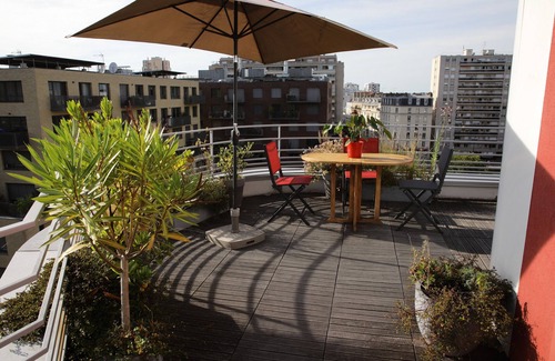 Duplex with large terrace, Canal view is located in 19th Arrondissement. Duplex with large terrace, Canal view provides accommodation, featuring Guest Services, Internet, Kitchen, among other amenities. This Apartment features Guest Services, Internet, Kitchen, to make your stay a comfortable one.