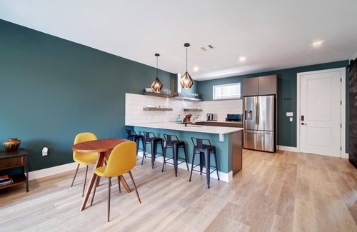 Modern architecture meets authentic design at this newly constructed boutique condo in the heart of East Austin's Holly Neighborhood. Within walking distance to a ton of great restaurants, bars, shops, and hiking paths. Easy access to Rainey and 6th Street, Capitol, Zilker Park, UT and other Austin hotspots. Highlights also include: dog-friendly (with some restrictions), private balcony, secured parking, 2 desks for remote work, Smart TVs include Hulu+Live TV account. All the comforts of home, but with white glove service, contact-free check-in, 24/7 support.