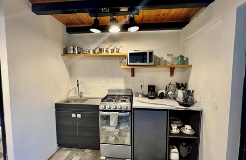 In the same space, we have a kitchenette equipped with everything you need to prepare the food you want. If you need any utensils, we can provide them, so you won't be limited in your ideas when it comes to preparing your meals during your stay.