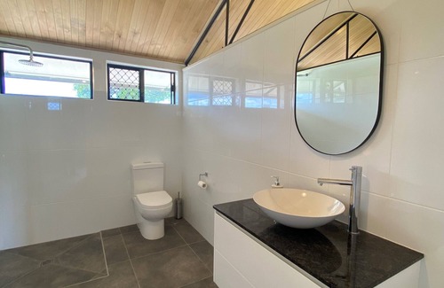 Early diggings Hut is in an environment dominated by nature. The passage of time is marked by the movement of cattle, the shade and mist from the ranges, the clouds gathering and dispersing around Mt Battle Frere. A cassowary crossing the paddock regularly in late evening, the call of the chowchillas and the fresh whip call of the rifle bird in the morning and the shrieks of the cicadas on a summer afternoon, indicate the time of day. The frequency and volume of rainfall marks the seasons. Located near the Nerada Tea factory, the Mount Bartle Frere walking tracks, equidistant between Malanda and Yungaburra.