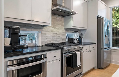 Modern 4-bedroom, 3.5-bath home in East Austin, perfect for groups of up to 9. Enjoy stylish interiors, open living spaces, and a fully equipped kitchen. The private yard offers fun outdoor games, ideal for relaxing or entertaining. Located just minutes from downtown, with fast Wi-Fi, smart TVs, and walkable access to top dining, music, and nightlife. A perfect stay for families, friends, or work trips.