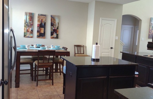 We are 12 minutes to Houston Methodist Baytown Hospital and 30 minutes from downtown Houston with easy access to I-10. Galveston Beach approximately 50 minutes and 20 min to Kemah boardwalk and just 9 miles from the Race Track We have a great restaurant selection nearby. Major Freeway access near. This home also includes everything you need ( full kitchen and more).