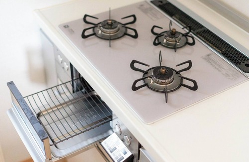 Full kitchen gas stove refrigerator microwave rice cooker toaster