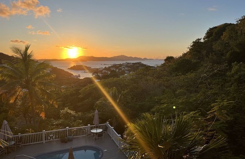 Welcome to Echo, your perfect island retreat on breathtaking St. John in the U.S. Virgin Islands. With an incredible sunset view that stretches across the ocean to St. Thomas, this inviting one-bedroom, family-friendly condo comfortably accommodates up to six guests and provides everything you need for a relaxing and unforgettable stay.