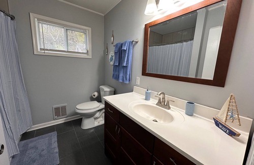 Step into this CLASSIC 1960's ERA rancher, transformed into an approximately 1,800 sq. ft. 4 bedroom 2 bathroom ; including lower level, BEAUTY, perfect for your next getaway! Nestled on a PRIVATE lot "off the beaten path," this property sits on nearly an acre of serene land, offering peace and quiet while keeping you close to all the essentials.