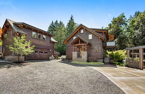 Find an extraordinary setting for an extended family getaway at this beautiful property on Bainbridge Island. Enjoy a three-story main home with grounds that include a private 15-foot swim spa and gorgeous views of the Olympic Mountains. This eco-friendly property sits near the southern tip of Bainbridge Island, with the waters of Puget Sound and the lights of the evening ferries visible from the porch and balcony. You'll be a one-mile stroll from Fort Ward Park, where you can take long walks on the beach and launch watercraft, and three miles from restaurants, live music, a wine bar, and a movie theater in Lynwood Center.