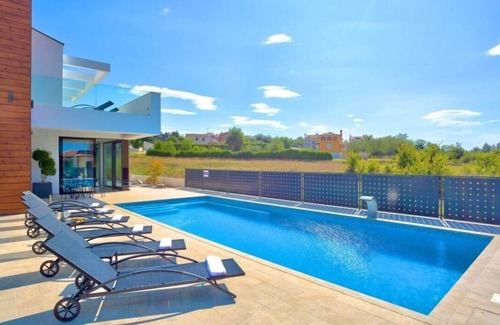 Press pause to your daily routine and enjoy a holiday in the luxurious Villa Aria in the picturesque town of Višnjan, western Istria! Accommodating up to 10+2 guests, it is an excellent choice for a large family or a group of friends, since it provides privacy and just the right setting for unforgettable moments.