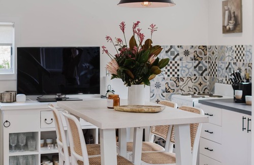 This unique barn is set amidst serene natural beauty, offering an idyllic couples retreat for those seeking relaxation and tranquility. Unwind by the beautiful outdoor fireplace, or enjoy dining in the converted shed, now transformed into a stylish and charming space. Take in alfresco meals beneath the enchanting willow tree or indulge in a peaceful picnic by the dam under the shade of a majestic fig tree. For an added touch of magic, explore the creekside firepit, built into the hillside—a perfect spot for stargazing and unwinding.