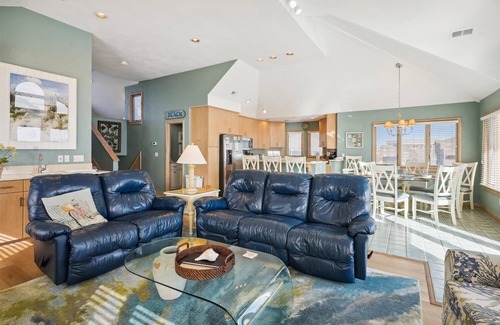 Top Level: *Queen Bedroom*Living Room*Dining Area w/ Table for 8*Kitchen Area w/ Breakfast Bar with seating for 4* Captain's Watch Sitting Area w/ Couch and Table for 4*Half Bath*Wrap Around Deck w/Hot Tub Overlooking Ocean*