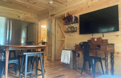 Welcome to the Eleanor. She is a sophisticated cabin unit located on the Apple River. She is located just 200 feet from the shore with private water access and is just a walk away from beautiful downtown Amery. This 2 bedroom sleeps 5 comfortably and has a large shared outdoor deck with a beautiful view. It has peace and quiet, river access, free kayaks/paddle boards when available, fire pits and beautiful scenery. Bring your ATV/UTVs, boats, snowmobiles, and all of your other toys. We are close to many other waterways, hiking, and recreational trails.