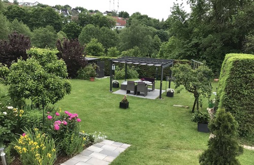 The bright non-smoker's flat (smoke on the partly roofed terrace) in southern location is situation in a 2 family house (meadows and wood immediately). There is a separate entrance and the apartment is completely furnished.