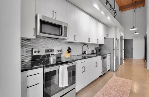This apartment serves as your private retreat, featuring industrial-chic accents and contemporary finishes that elevate the living space. Every detail is crafted to ensure a luxurious and comfortable stay, making it the perfect place to call home during your visit.