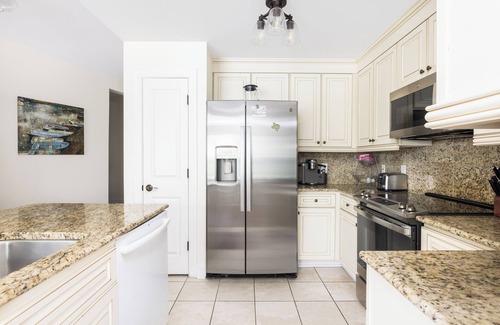 Our condo comfortably accommodates up to 6 adults with three well-appointed bedrooms. The luxurious master suite features a king-size bed and an ensuite bathroom with a soaking tub and stand-alone shower. The second bedroom offers a queen-size bed, while the third bedroom is equipped with two twin beds, perfect for children. The two full bathrooms are stocked with complimentary toiletries for your convenience.
