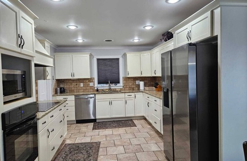 Enjoy the updated kitchen, expansive windows, and a gorgeous backyard with a pool, perfect for entertaining or unwinding after a long day. Every bedroom features a Smart TV, and the peaceful, safe neighborhood is ideal for extended stays.