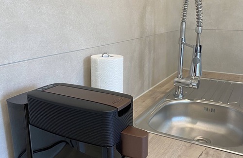 Prepare a home-cooked meal in the kitchen, complete with an oven, a stovetop, and a refrigerator, as well as a coffee maker, an electric kettle, and a microwave. Bathroom amenities include a hair dryer, towels, and toilet paper. Other amenities include a living room, bed sheets, heating, and a dining table.