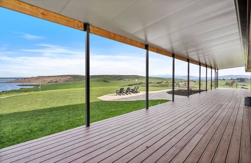This spacious 4-bedroom, 2-bathroom home in Sorell features a modern open-plan layout with floor-to-ceiling windows that fill the interiors with natural light. The sleek kitchen is fully equipped with utensils, a gas stovetop, and an oven, while the dining area comfortably seats 8, with additional seating for 6 at the countertop. The cosy living area includes a fireplace, a ceiling fan, and a TV with streaming options. Bedrooms are complemented by spa-like bathrooms with brand-new fixtures. Outdoor amenities include a large green space and an undercover deck with scenic nature and creek views. Additional features include a laundry with a washer and dryer, split air conditioning, Wi-Fi, and parking for up to 12 vehicles.