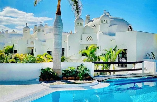 Very sunny apartment, by the sea,with FIBER and WiFi,for 2, 4 or 6 adults. Basic price for a week stay. Space ,charming ,well ventilated and fresh. Careful disinfection between each rental. Very large terrace of 20 m2 , facing south , sea view and Moorish domes:change of scenery assured , privileged location in a very beautiful complex of the 'Thousand and One Nights,secured with 3 swimming pools including a heated panoramic plus a wading pool . Residence with white domes and very nice exotic gardens,a restaurant bar to eat by the pool with excellent cocktails: very good dishes at very interesting prices. Private parking,in the shade and secure. Very neat,original decoration,which invite relaxation. Theapartment benefits from a very large sunny terrace all day long with a basin, views of the white domes and the sea,magnificent sunset,a large living room with TV ,an American kitchen with vitro,oven,dishwasher,washing machine,very large refrigerator,freezer, microwave, toaster, Dolche Gusto coffee maker,kettle,and all the necessary for cooking ,iron and ironing board. The bathroom of the bright top with bathtub ,that of the bottom with walk-in shower, hair dryers.The towels are provided,as well as the pool towels. In the bedrooms the bedding is quality , Upstairs,bed 160 by 2m,downstairs,large air-conditioned bedroom with 2 single beds in 90/2m and a pull-out bed with also 2 beds 90/2m plus a patio with table and armchairs. 2 Small supermarket ,hairdresser,beautician 5 minutes' walk away .LIDL,ALDI,Mercadona,Hyperdino,town ofAdeje 5 minutes by car. Bus stop is a 5-minute walk. The complex is located on the seafront,(small cove 10 minutes' walk away) in a quiet area but with many restaurants all around, maritime paseo with wonderful views of LaGomeraIsland and its Sunsets. 10 minutes by car , the famous white sand beach,protected del Duque and the lively areas of the Americanos and Christianos. Theapartment has an ideal position for the discovery of theisland.(located 5mn from themotorway). Hiking possible from the apartment to reach Puertito beach and one of the most beautiful wild beaches of the island:Playa Diego Hernandez.Many other hiking... 5 minutes walk ,very good Italian restaurant, Roca Negra Chill Out restaurant to enjoy the magnificent sunsets, special paella divine restaurant overlooking La Gomera . A 10-minute walk,Playa Paraïso with its beautiful hotels, SPA , shops, restaurants, Rosa Center shopping center with shops,(doctor,pharmacy). 5 minutes by car,many other excellent restaurants,typical and at low prices.(addresses provided when booking). Diving club 100m away;possibility of diving with sea turtles. Golf de Adeje 5 minutes by car. The largest water park in Europe,Siam Park 10 minutes by car. The very nice, huge and pleasant Siam Mall center is a 10-minute drive away with all the shops like Zara,Mango,HetM,Massimo Duty........ The assurance of a good holiday in the sun at a very price accessible all year round. Possibilities to visit theisland of La Gomera and the other Canary Islands. Good plans provided to the rental to optimize your stay.(excursions,hikes, car rental, typical restaurants). Very easy contacts with the owner.
