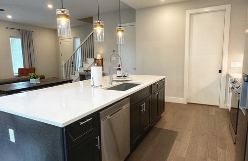The open concept kitchen and living room create a wonderful space for family and friends to gather. There is a desk with 2 chairs provided in the living area for a designated workspace. From the living room, guests can walk out onto the patio and enjoy the private backyard (partially fenced in). All bedrooms are located on the second floor which come equipped with en-suite bathrooms. (Three of four bedrooms contain walk-in closets.)