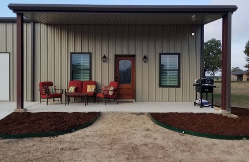 Relax and regenerate in this beautiful 2 Bed/ 1 Bath barndominium just 18.9 miles from the Round Top fun! Full Kitchen and porch for that delicious morning coffee or wildlife watching. All the comforts of home welcome you so you can make the most of your time visiting the area. Comfortable, luxury beds and bedding will help you relax so you are ready to spring into shopping action during the Round Top Show!