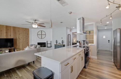 Step into this stylish vacation home, designed with sleek finishes and plenty of room to relax. With 4 bedrooms, 2 bathrooms, and an open floor plan, it’s perfect for families or groups. The private backyard oasis features a pool and hot tub, ideal for sunny afternoons and cozy evenings. Whether you’re here for a short getaway or an extended stay, this home provides a chic and functional “home away from home,” perfect for vacations or corporate housing.