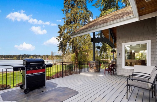 Relax and enjoy the view at Elephant Lake House private lakefront. It is a peaceful, beautiful and huge home. Lakefront with many water activities including fishing, swimming, kayaking, and a peddle boating! 3 huge bedrooms, 4 bathrooms and a large private dock. 900SFT media room with pool tables and games. Watch your favorite show on large screen TV. Enjoy sunrise/sunset right from your room with double French door. Have your morning coffee or evening drinks on the covered wraparound patio.This home is amazing all year round with a gorgeous lake view and direct access to the lake. Your home away from home perfect for a Washington vacation.