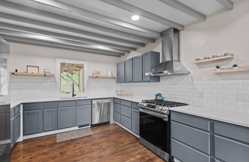 • All BRMR homes offer well stocked kitchens with all utensils needed to cook meals. There is also a "starter set" of paper products at the house: a roll of toilet paper per bath, a couple garbage bags, a small vial of dishwashing liquid, a few tablets of dishwasher detergent, some laundry pods, a roll of paper towels, hand soap, shampoo, conditioner, body wash, and some makeup remover cloths. There are enough of these items for one night, or maybe two.