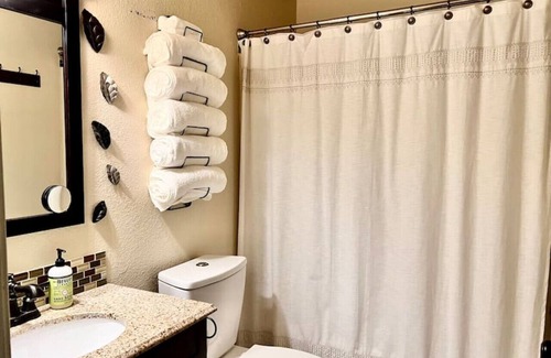 Both bedrooms have queen sized beds, dressers and night stands. The loft has a twin bed and additional tv mounted to the wall for the kiddos!