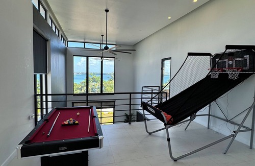 The floor-to-ceiling windows frame breathtaking island views. The second floor game room with Pool table / Table tennis, 2 player jump shot and Pac-Man arcade games offer fun for all ages. Our kitchen sets the stage for culinary delights, while grand plush bedrooms with 2 KING and 1 QUEEN size beds, 6-foot high mirrors create a lavish and comfortable haven for restful night's sleep. The private infinity pool overlooking the ocean is steps from the master suite, guaranteeing serenity.