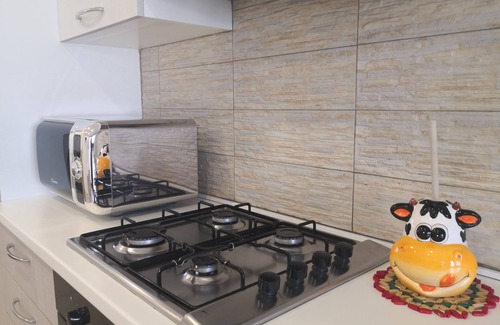 It consists of a double bedroom with a terrace overlooking the historic center and a sea view, a spacious bathroom with shower, a large living area with a double sofa bed and an equipped kitchen, a dishwasher included. The house is equipped with a large closet, convenient for storing luggage.