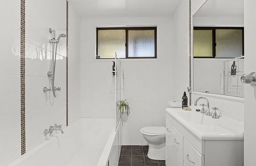 The main lounge room is spacious with two family size couches and large flat screen TV, and of course Wi-Fi is provided for your convenience. Drive straight in and park undercover, there is plenty of room to let the kids run around and play in this secure property, set back in a quiet cul-de-sac.