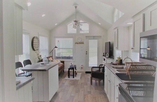 Each tiny house has 1 assigned parking spot on the side of each cabin and a personal firepit. Cars are not allowed to be parked in front of cabins and any additional cars must be parked in the general parking area near the barn. Outdoor party lights are on a dusk to dawn timer - please do not unplug or adjust. Lofts are for sleeping and relaxing only...please no food, drinks or shoes allowed in the loft space.