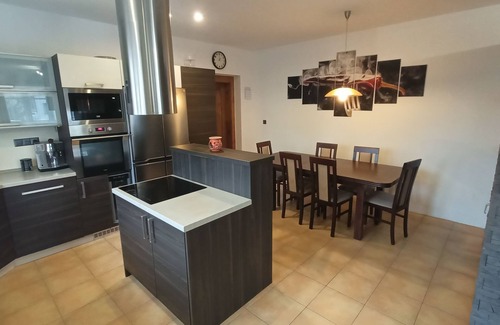 This 3-bedroom house is perfect for your escape to Královéhradecký kraj. With 1 queen bed, 2 twin beds, 1 full bed, and a cozy sofa bed, this superb property offers a tranquil retreat. Enjoy the convenience of a washing machine and heating, along with a bathroom featuring a shower, bathtub, and hair dryer. The living room with an additional sofa bed provides the perfect space to unwind after a day of exploring. We look forward to hosting you at our place.