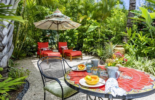 The Enchanting Bungalow is decorated with upscale furnishings, original art and collectables from around the world. You will have your own private entrance, private yard & garden - filled with fragrant flowers - gardenias, plumerias, white ginger, night-blooming jasmine, and more...there are over 300 varieties of plants on the property.